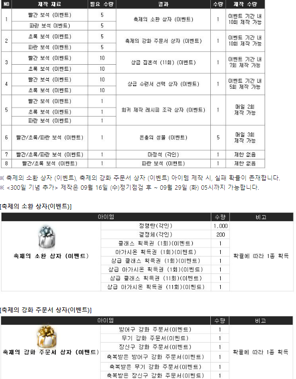 획득 아이템은 축제의 소환상자,축제의 강화 주문서 상자 이렇게 두 가지를 획득할 수 있죠.