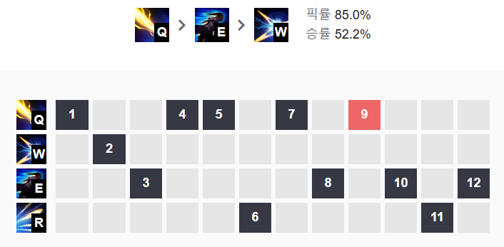 루시안의 스킬 빌드입니다. 루시안의 스킬은 Q-E-R-W순으로 마스터를 합니다.