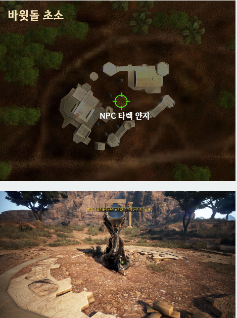 고르고의 악몽 진행에 앞서,바윗돌 초소 NPC 타랙 얀지에게 금괴 10G로