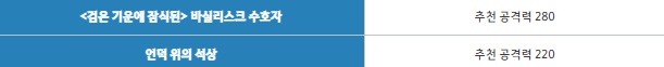 단단한 흑결정 조각40개,뾰족한 흑결정 조각 25개,발크스의 조언 +20 5개