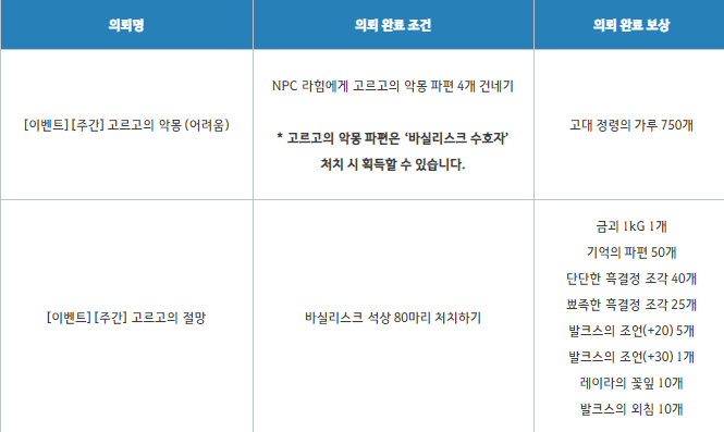 이벤트 기간에 바실리스크 소굴 거점관리자 NPC 라힘에게 특별한 주간 의뢰를 수주 받을 수 있습니다.