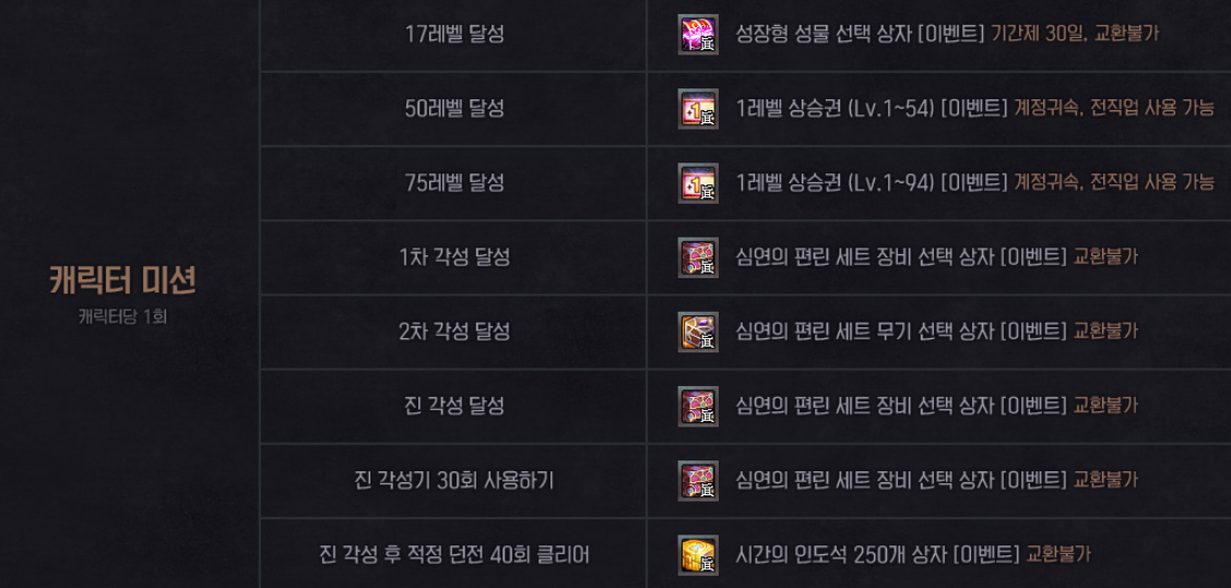 2. 달성 상자 [이벤트] - 캐릭터 미션을 모두 클리어 한 보상입니다.