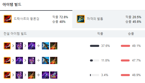 드락사르의 황혼검을 가기 위한 빌드입니다. 공격력도 더 높고 물관10이 붙어있는 톱날단검 먼저 가주고 신발까지 구매해줍니다. 포션은 솔직히 안사도 되는게 파이크 W로 그나마 피를 채울 수 있기 때문이죠.
