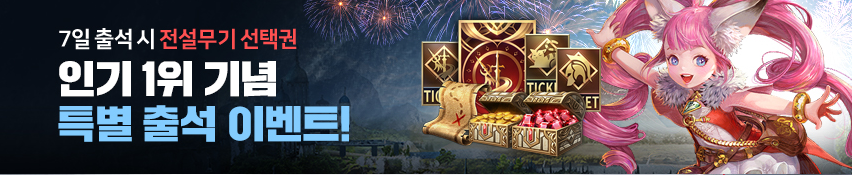 이걸 기념으로 해서 '인기 1위 기념 특별 출석 이벤트'를 시행하게 되었는데요. 그 보상과 내용이 무엇인지 알아보도록 하겠습니다.