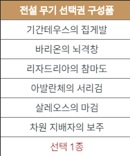 다음은 전설 무기 선택권 구성품 입니다.
