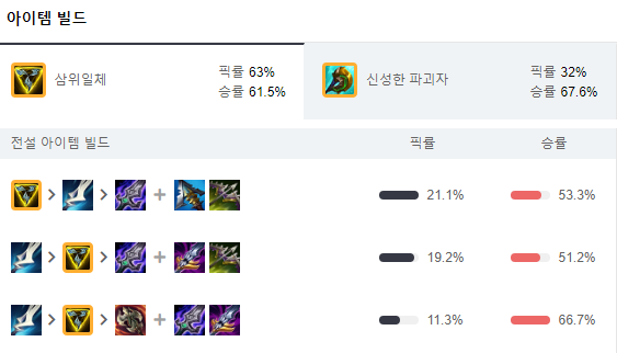 단, 2코어까지는 무조건 고정이고 이후 소라카 잔나 나미 유미 세라핀 소나 이런 회복스킬을 가진 챔이 있다면 3코어로 필멸자(치감템)부터 가주시고 4코어로 몰락 세릴다 가주시면 됩니다.