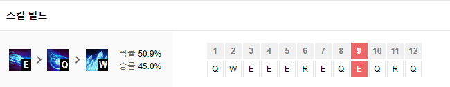 맨처음에 Q,W,E골고루 1개씩 찍어주시고 이후에는 E>Q>R>W 순으로 마스터 해주세요.