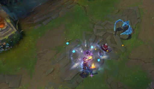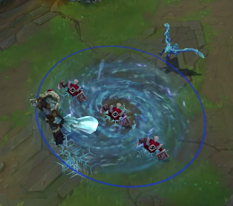 E를 날려줍니다. 참고로 E는 타겟 스킬이며 상대가 Q를맞거나 R로 폭풍범위 안에 있는 상태에 있으면 E의 데미지가 2배로 늘어납니다.