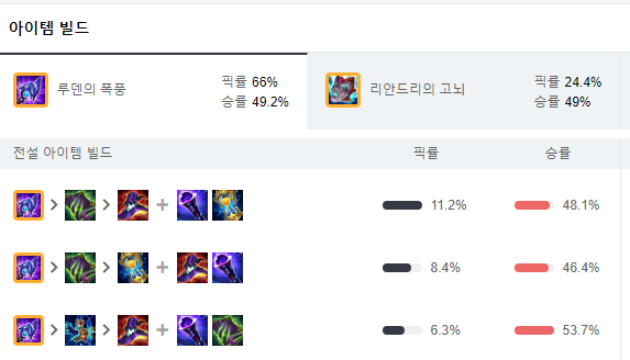 럭스 '루덴의 폭풍'아이템 빌드 입니다.