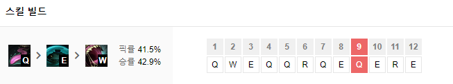 맨 처음에 Q,W,E를 각각 1개씩 찍어주시고 그 이후에는 Q>E>R>W 순으로 마스터 해주세요.