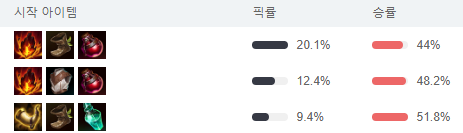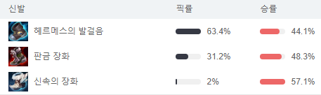 티어/승률/픽률 모두 최하위권으로 별로 좋지 않은 통계치 인데요.