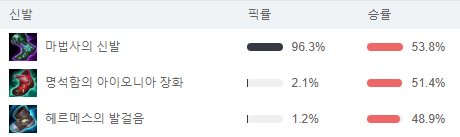 탱커도 아니고 힐러도 아니기 때문에 무조건 딜!! 마법사의 신발 고정입니다.