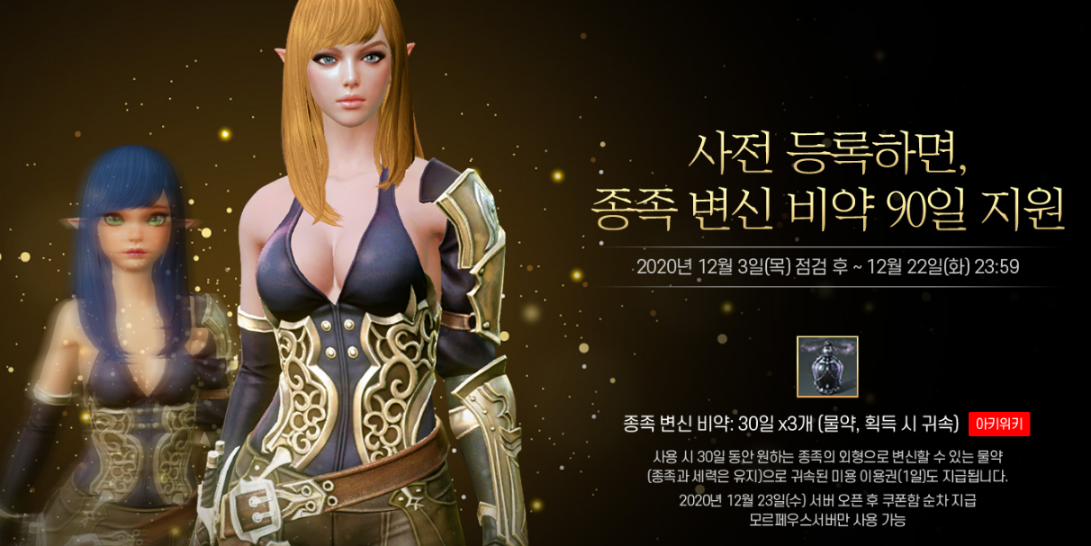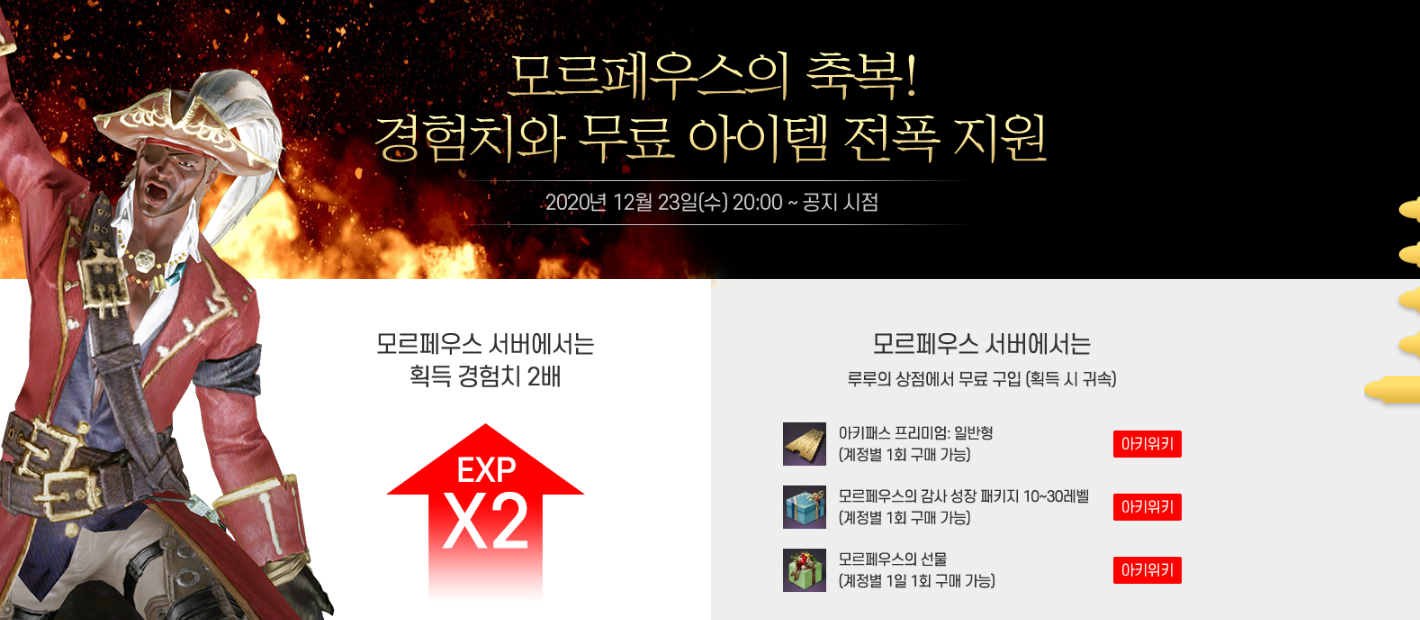 신규 서버 모르페우스 오픈 일정 : 2020년 12월 23일 수요일 20시