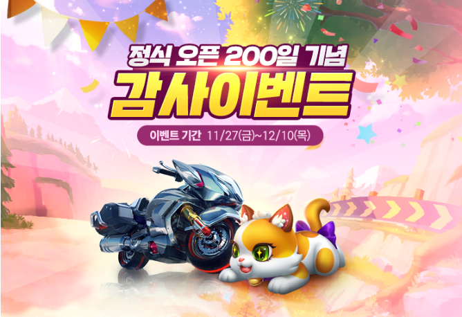 - 이벤트 선물 : 배찌(기본) 14일 + 골드 기어부품 10개 + 2,020 K코인
