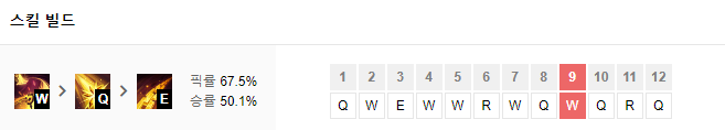 맨 처음에 Q,W,E를 골고루 1개씩 찍어주시고 이후에는 W>Q>R>E순으로 마스터 해주세요.