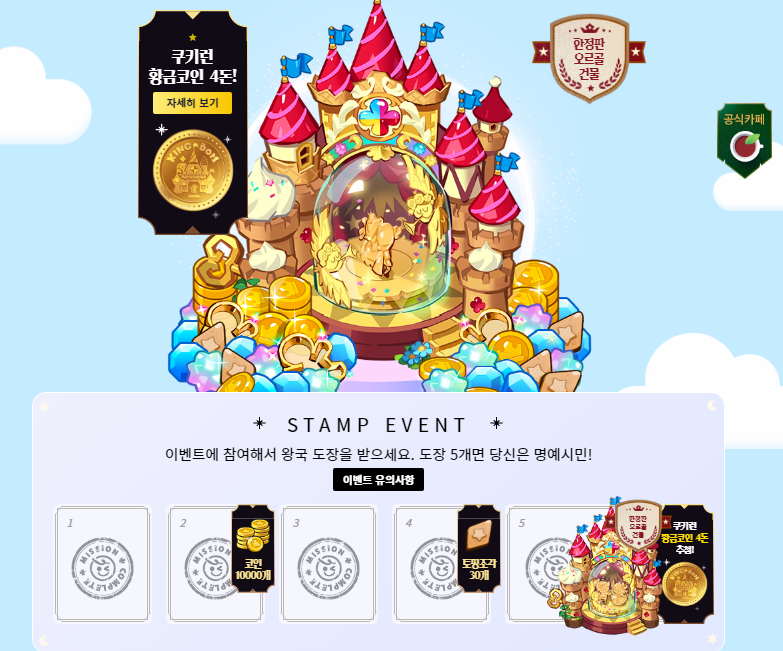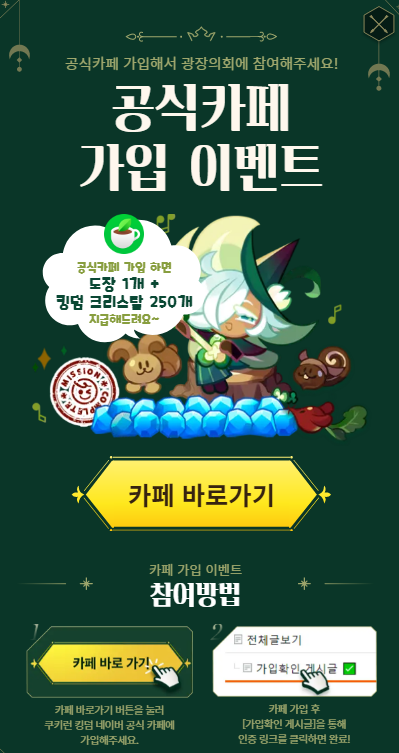 3. 공식카페를 가입하면 도장1개 + 킹덤 크리스탈 250개를 지급합니다