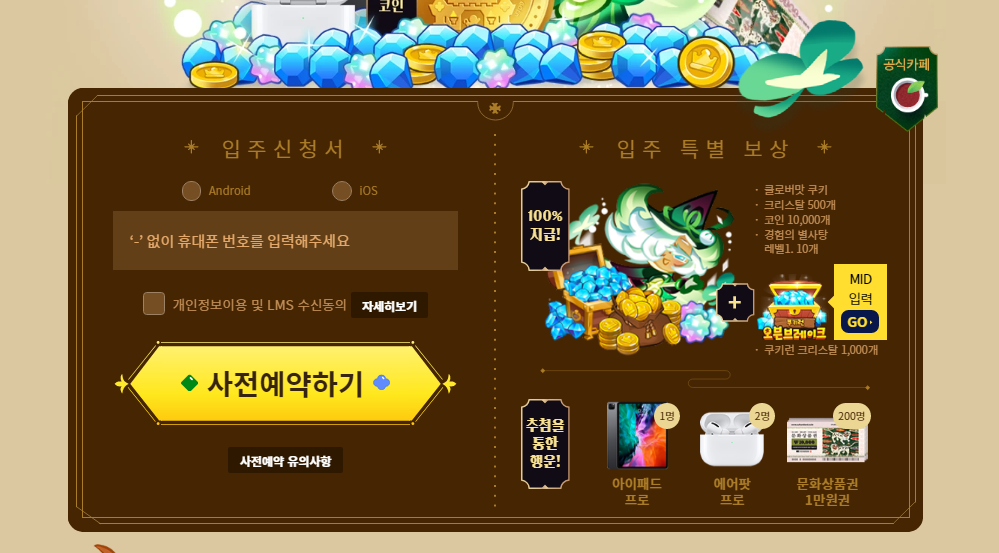 마지막으로 쿠키런 킹덤 사전예약 보상 크리스탈과 쿠폰및 출시일 확인에 대해서 말씀드리면