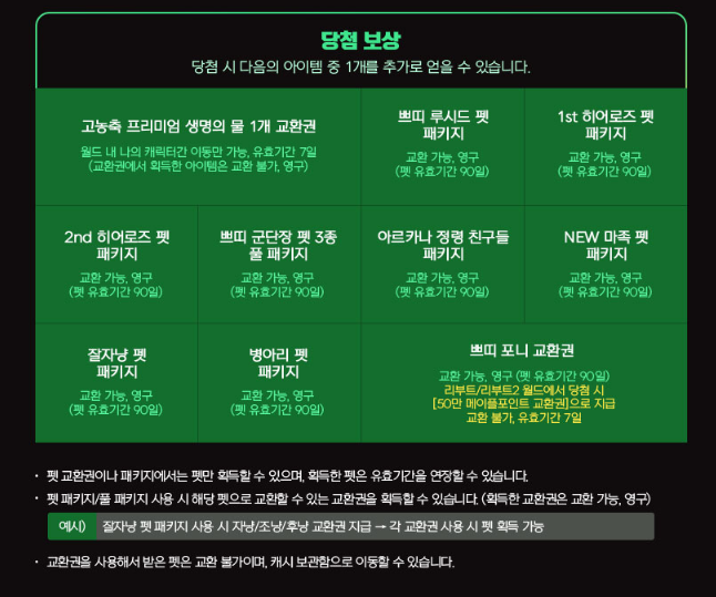 각각의 메이플포인트 교환권을 얻을 수 있습니다.