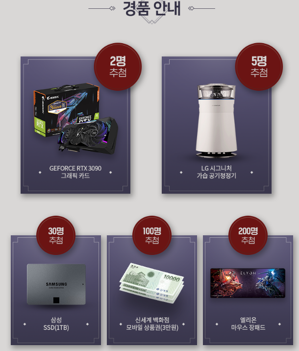 이벤트 종료시 게임 내 도전 과제 최종 완료 단계에 따라 추첨을 통해 경품을 드립니다