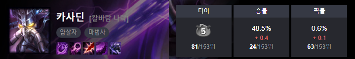 티어/픽률 모두 중위권이지만 승률은 24위로 상위권을 유지하고 있죠