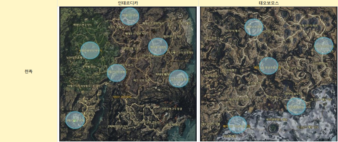 (천족) 인테르디카 - 스테논 해안 / (마족) 벨루스란 - 암스니르 얼음호수