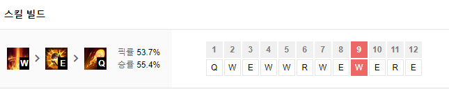 맨 처음에 Q,W,E를 골고루 1개씩 찍어주시고 이후에는 W>E>R>Q순으로 마스터 해주세요