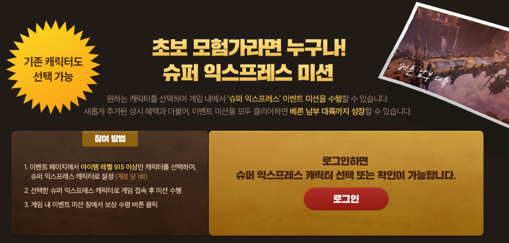 신규/복귀/기존 캐릭터도 선택이 가능한 '슈퍼 익스프레스 캐릭터 설정'을 하면