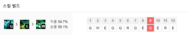 맨 처음에 Q,W,E를 골고루 1개씩 찍어주시고 이후에는 Q>E>R>W순으로 마스터 해줍니다