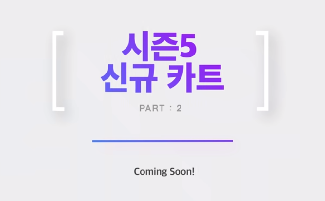 이번 시즌5에서는 신규 카트인 볼트,블랙페이라,세이버 버스트 등의 카트들이 대거 출시됩니다.