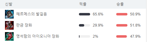 티어/승률/픽률 각각 다르긴 한데 승률만 봐선 상위권에 속합니다.