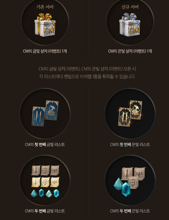 신규 서버에서는 CM의 은빛 상자를 보상지급하게 되며