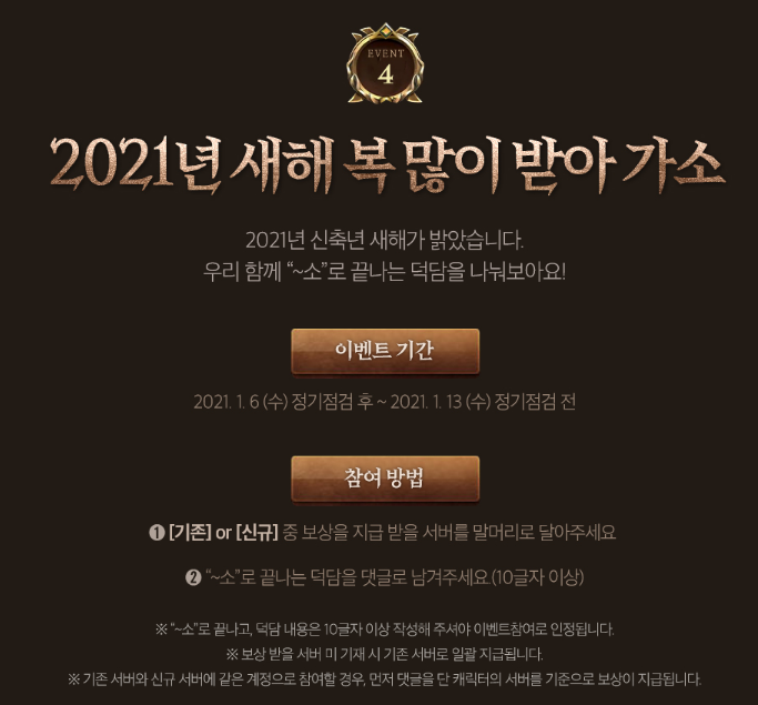 이벤트 기간 : 2021년 1월 6일(수) ~ 2021년 1월 20일(수)점검 전