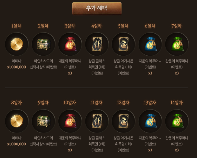 8일차부터 14일차 또한, 1~7일차 보상대로 순서가 똑같습니다.