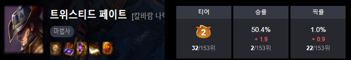 티어 / 승률 / 픽률 모두 상위권으로 특히 승률이 매우 높은 챔입니다