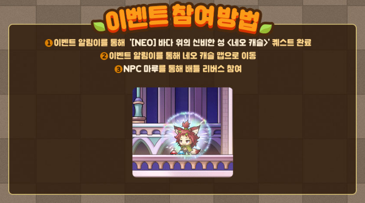 1. 이벤트 알림이를 통해 '[NEO]바다 위의 신비한 성<네오 캐슬>'퀘스트 완료