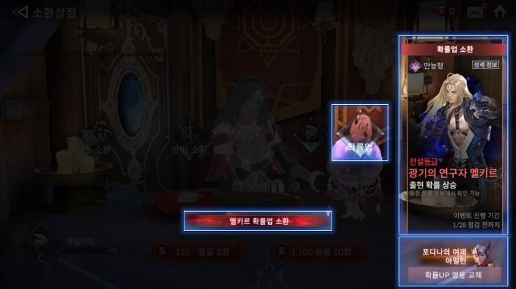 마지막 멜키르라는 전설영웅 확률업 소환 이벤트도 진행하고 있으니