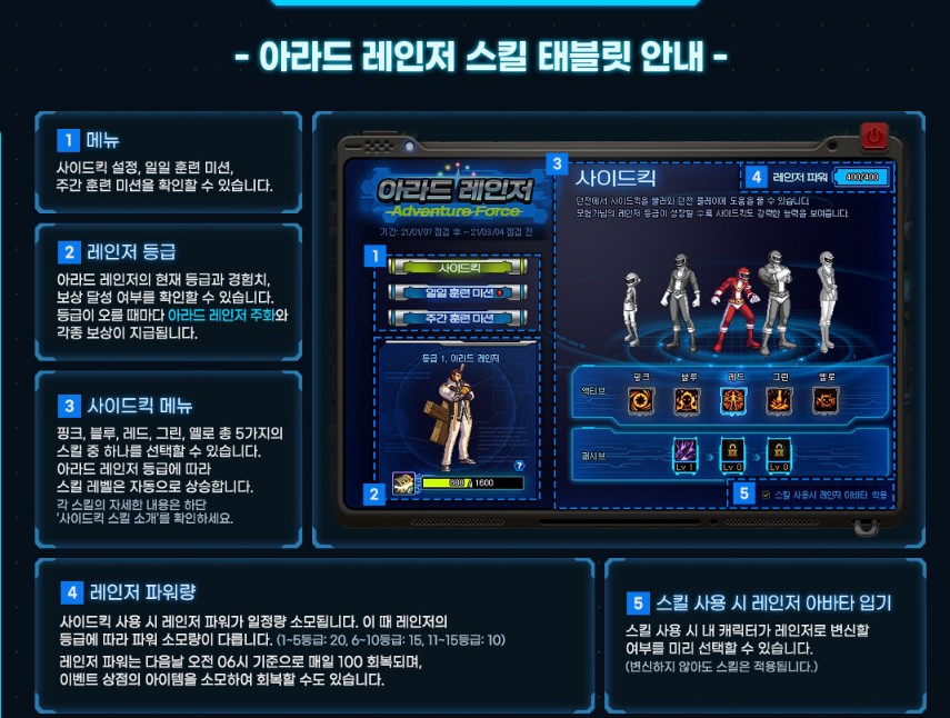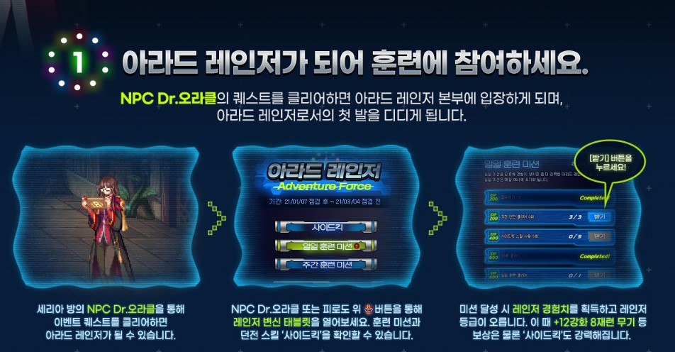 그냥 아라드레인저가 돼서 각종 훈련(미션)을 클리어하면 포인트를 주는데