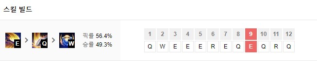 맨 처음에 Q,W,E를 골고루 1개씩 찍어주시고 이후에는 E>Q>R>W순으로 마스터 해주세요