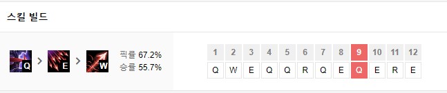 맨 처음에Q,W,E를 골고루 1개씩 찍어주다가 이후에 Q>E>R>W순으로 마스터 해주세요.