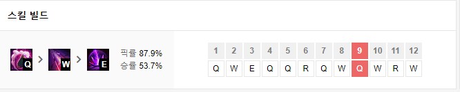 맨 처음에 Q,W,E를 골고루 1개씩 찍어주시고 이후에는 Q>W>R>E순으로 마스터 해주세요