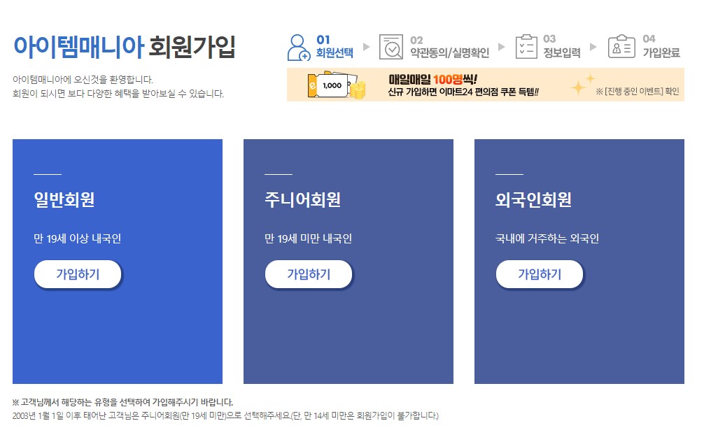 해당 사이트에 신규 가입을 하시면 이마트24 편의점 전용 쿠폰과