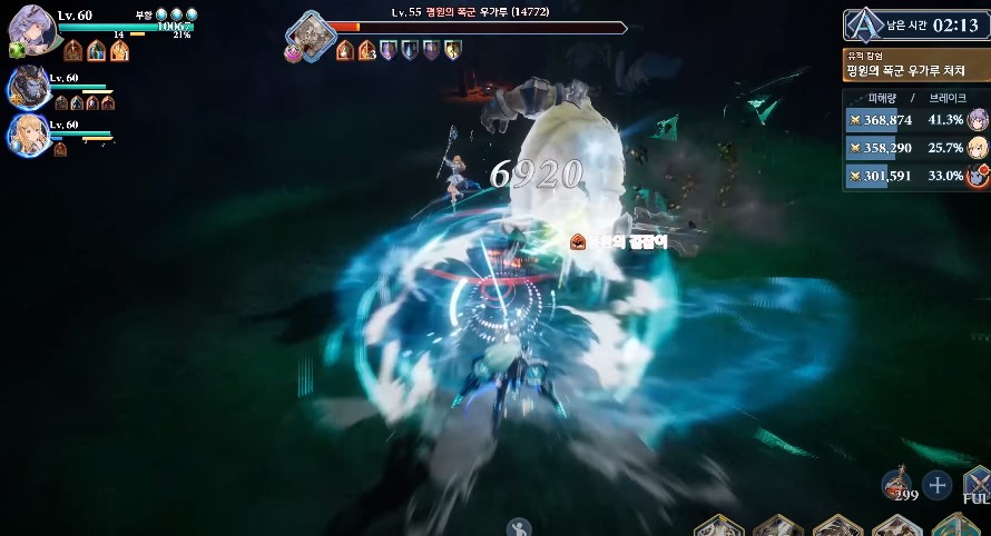 플레이 입니다. 3명으로 한 팀을 구성할수 있는데 이 구성원에서 필드에 몹을 잡을때