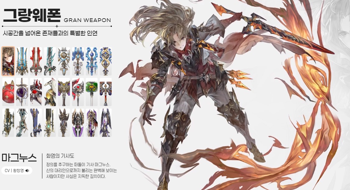 여기서 말하는 그랑웨폰은 그랑사가에서 캐릭터가 스킬을 사용하기 위해 필요한게