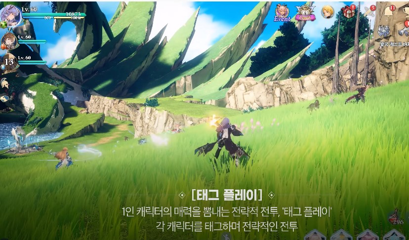 그랑사가는 총 6명의 캐릭터를 키우면서 '태그 플레이'로 한 명 한명씩 소환하여 전투를 할 수 있는