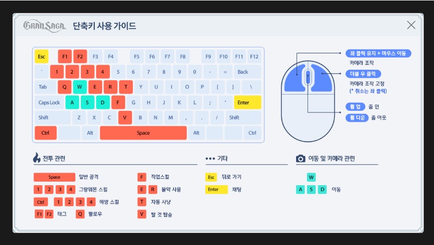 그랑사가를 PC로 이용하실 경우 위의 단축키를 숙지하여