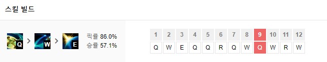 맨 처음에 Q,W,E를 골고루 1개씩 찍어주시고 이후에는 W3렙먼저 찍고,