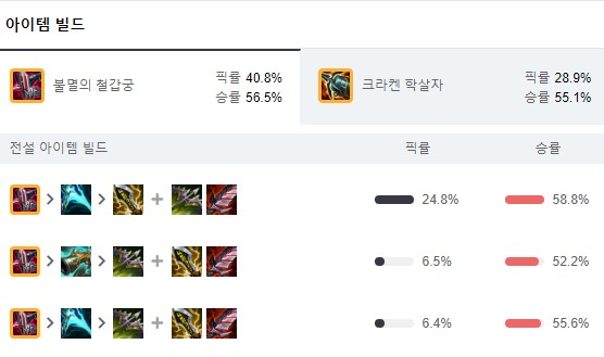 철갑궁을 갈 것이기 때문이죠. 정복자는 크라켄과 시너지가 좋고