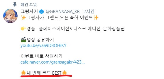 공식 트위터(네번째 코드) : BEST
