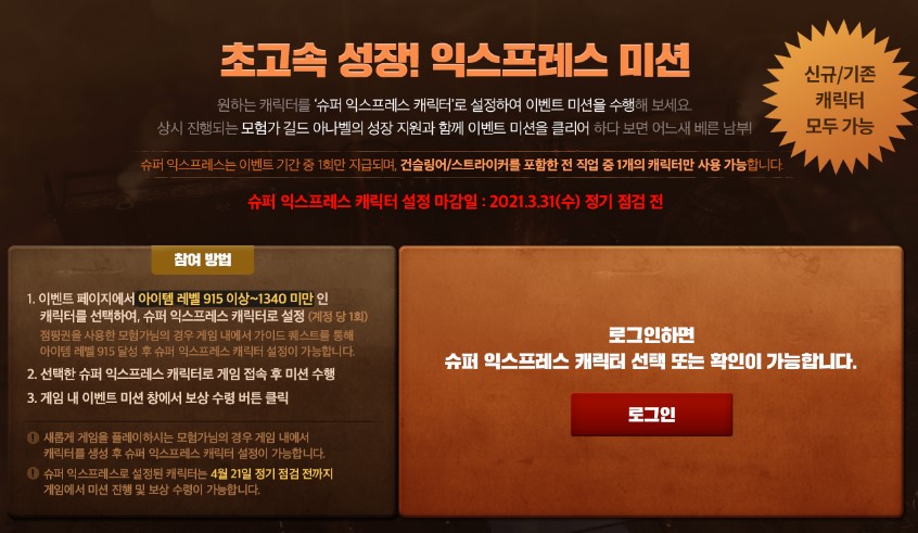 이 슈퍼 익스프레스 캐릭터 설정 마감일은 2021년 3월 31일(수) 점검 전 까지이며