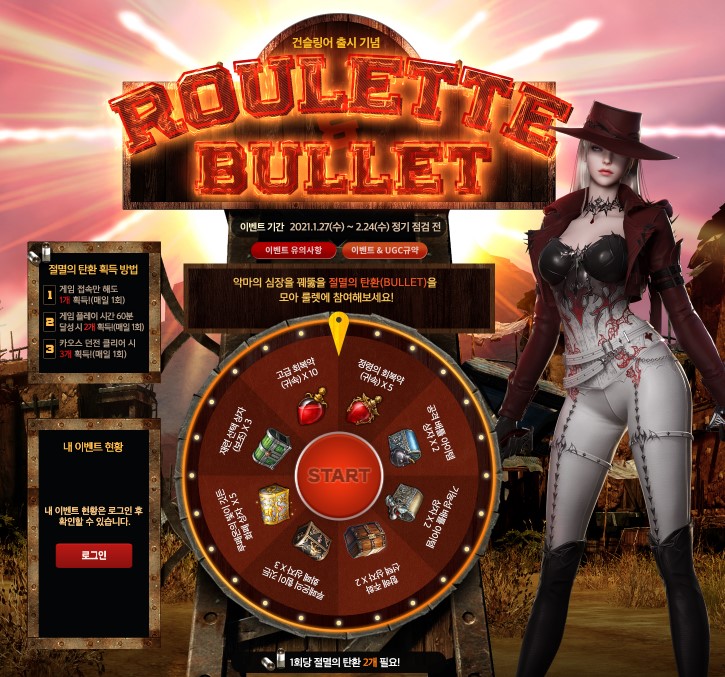 룰렛을 돌려 다양한 아이템을 획득하는 이벤트로